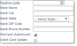 4. | To indicate that your organization uses the account for pay cards, select PayCard (Automove). |