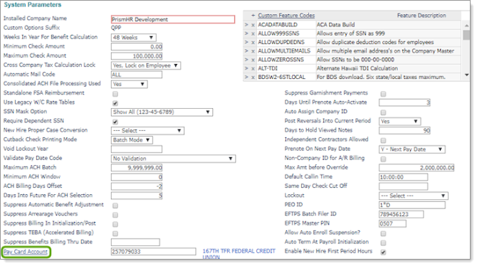 Adding Pay Card Accounts in System Parameters
