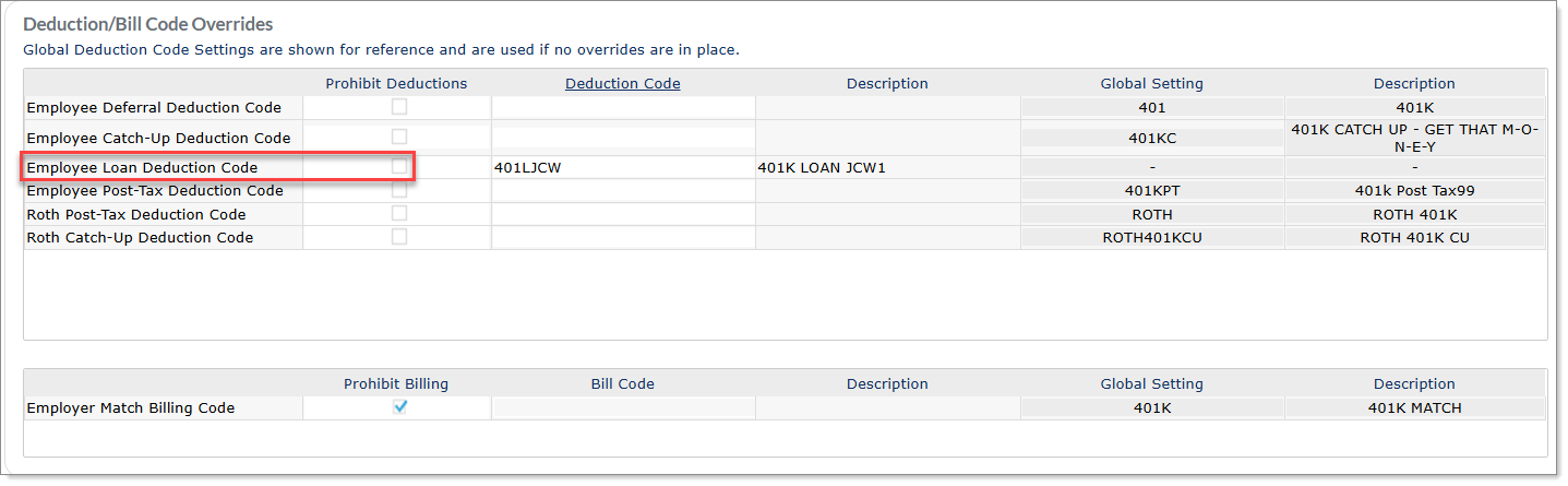 For more information, see Setting Up Deductions and Bill Codes Overrides help topic. |