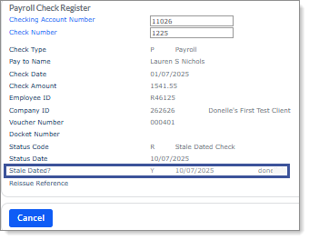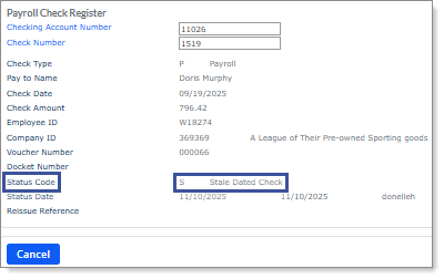 The system now accurately reduces the Checks Total to reflect the total amount of the Check Amount column for all rows in the MVG when users remove rows from the Stale Check Reconciliation MVG. |