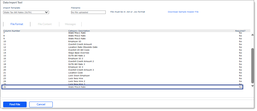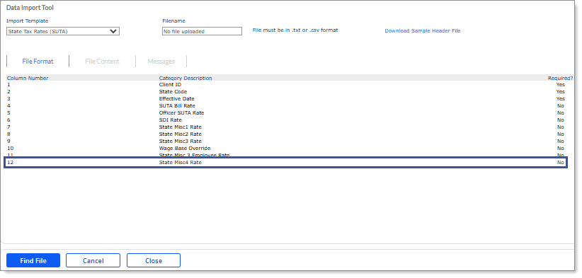 On the Client Benefit Plan Import form, two new optional columns have been added for Client Plan Renewal Month and Client Plan Renewal Day fields. The sample header file is also updated to include these two newly added fields. |